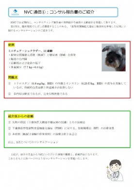 2016年04月22日(金) 症例紹介 コンサルテーション例 【case01】:糖尿病と副腎皮質機能亢進症を併発した犬に対する治療 ミニチュアシュナウザー ・副腎皮質機能亢進症と糖尿病を併発 ・軽度の白内障 ・活動性及び食欲の低下 ・体重減少